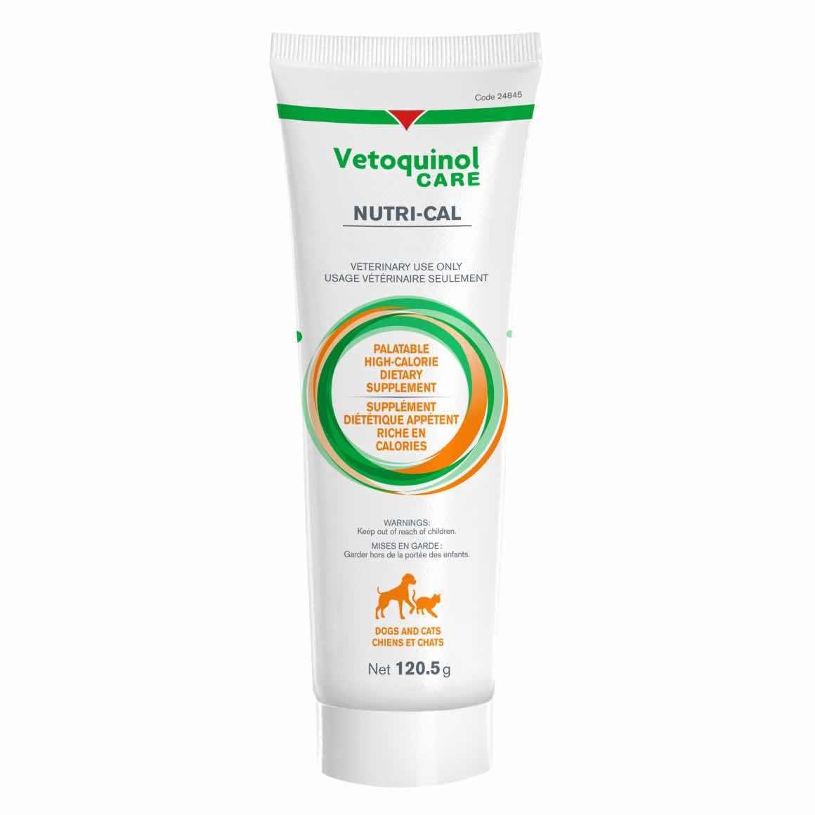 Nutri-Cal by Vetoquinol is a palatable, high-calorie dietary supplement gel for dogs and cats. This easy-to-give oral gel offers convenient calorie support as a nutritional complement to your pet’s regular diet. Ideal for pet parents looking for dog supplements or cat supplements their pets actually enjoy. Supplied in a 120.5 g tube with Original flavour and available without a prescription in Canada.