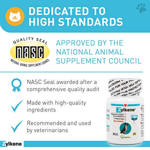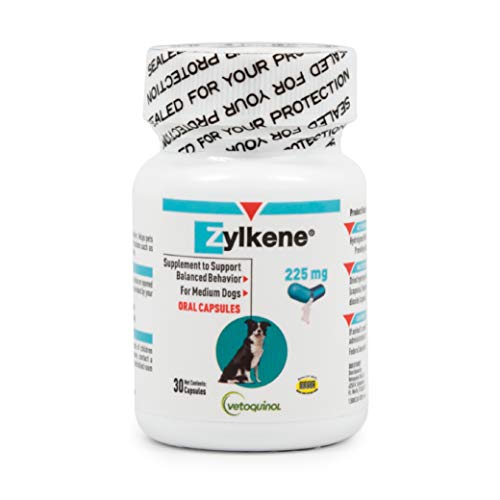Vetoquinol Zylkene Behavior Support Capsules for Dogs & Cats, 225mg, 30ct - Calming Natural Milk Protein Supplement - Help Pets Cope with Change & Noise-Related Stress - Non-Drowsy - Lactose-Free
